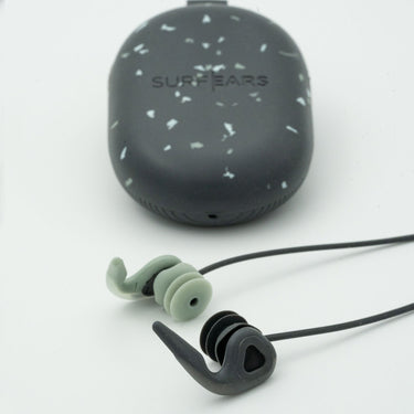 • 1 pair of SurfEars earplugs, pre-mounted with size L wings and M gels, and a detachable leash.