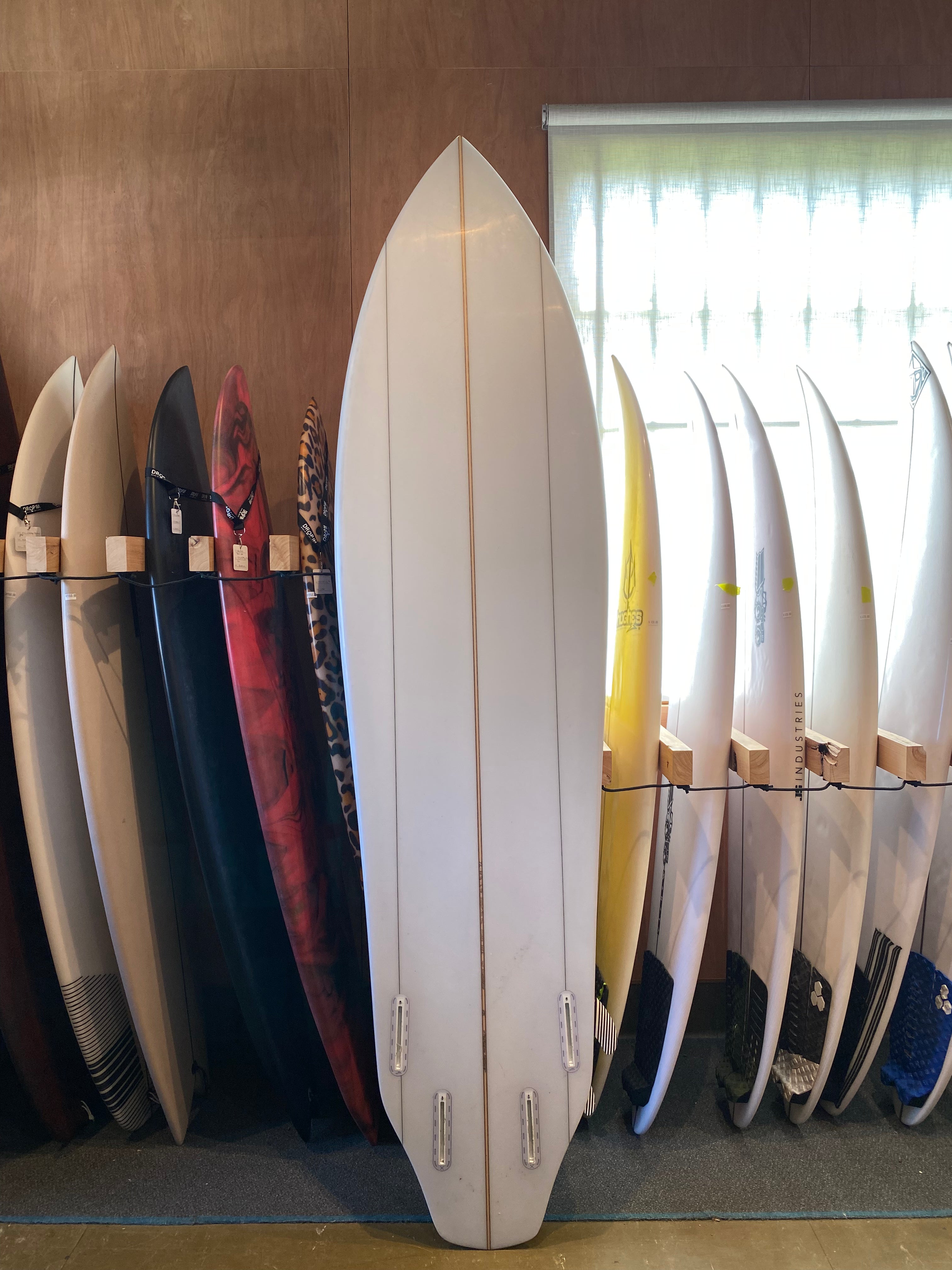 An original hand shaped by Josh before he took a sabbatical in 2022. This board carryies lots of speed through turns and whilst its nearly 3 inches thick up front the tail is super thin and best paired with your favourite quads, try it with keel quads or up rights.
