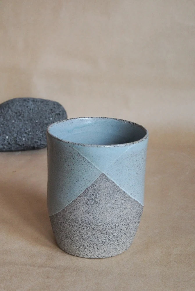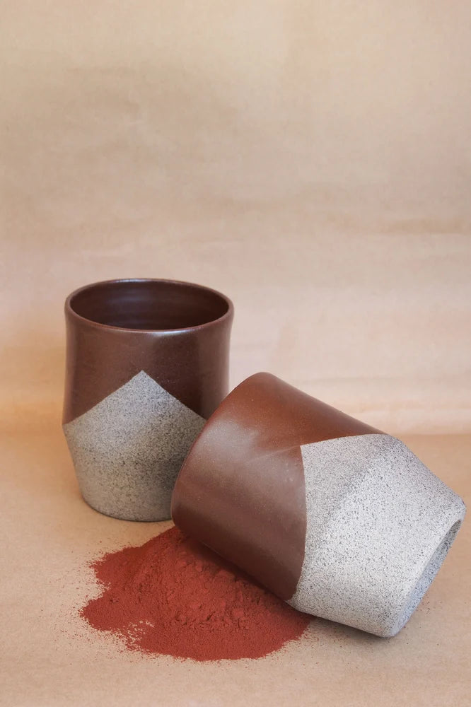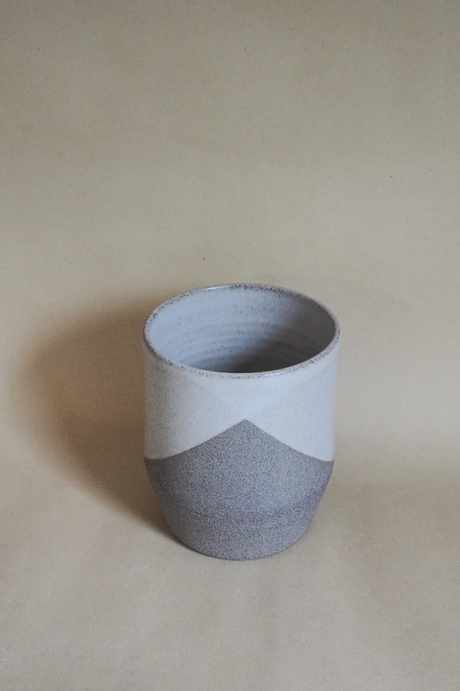 Hand thrown on the potters wheel in brutalist clay and doubled dipped in smooth glaze.