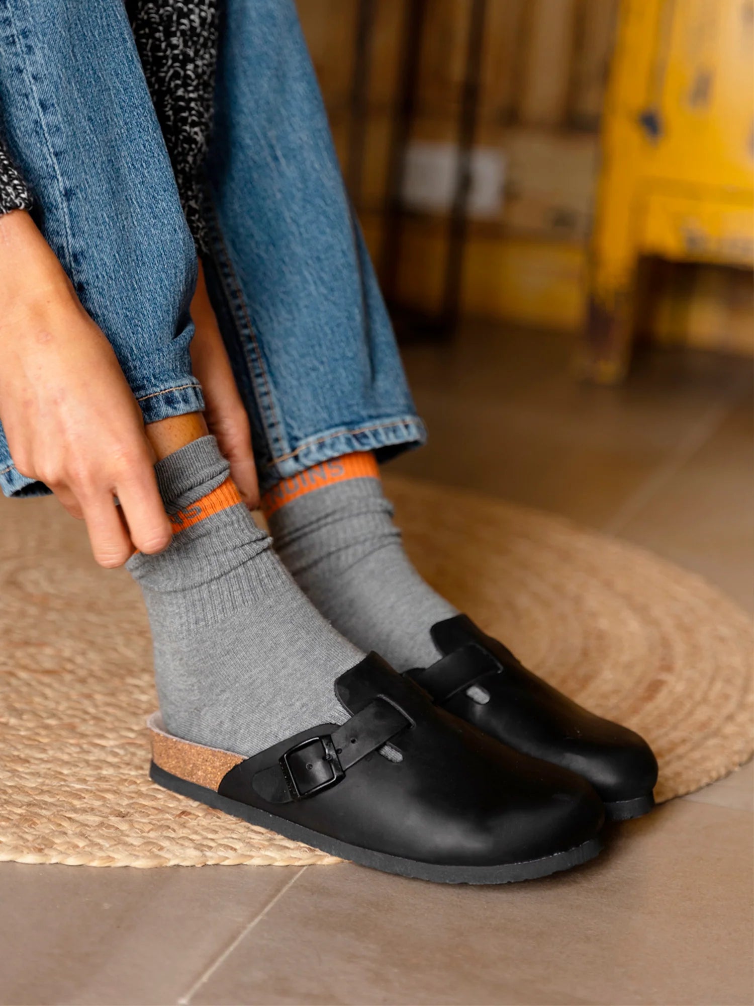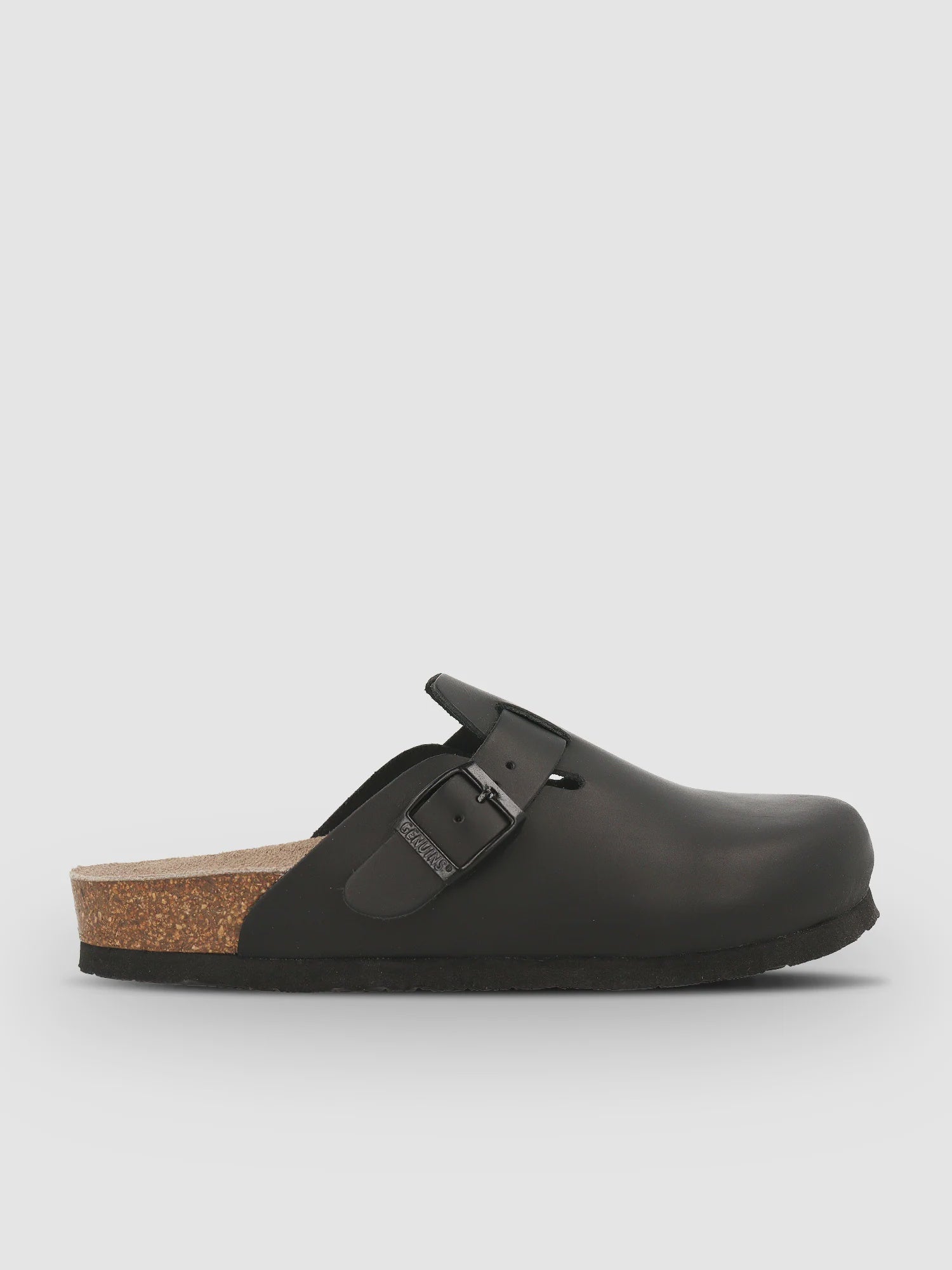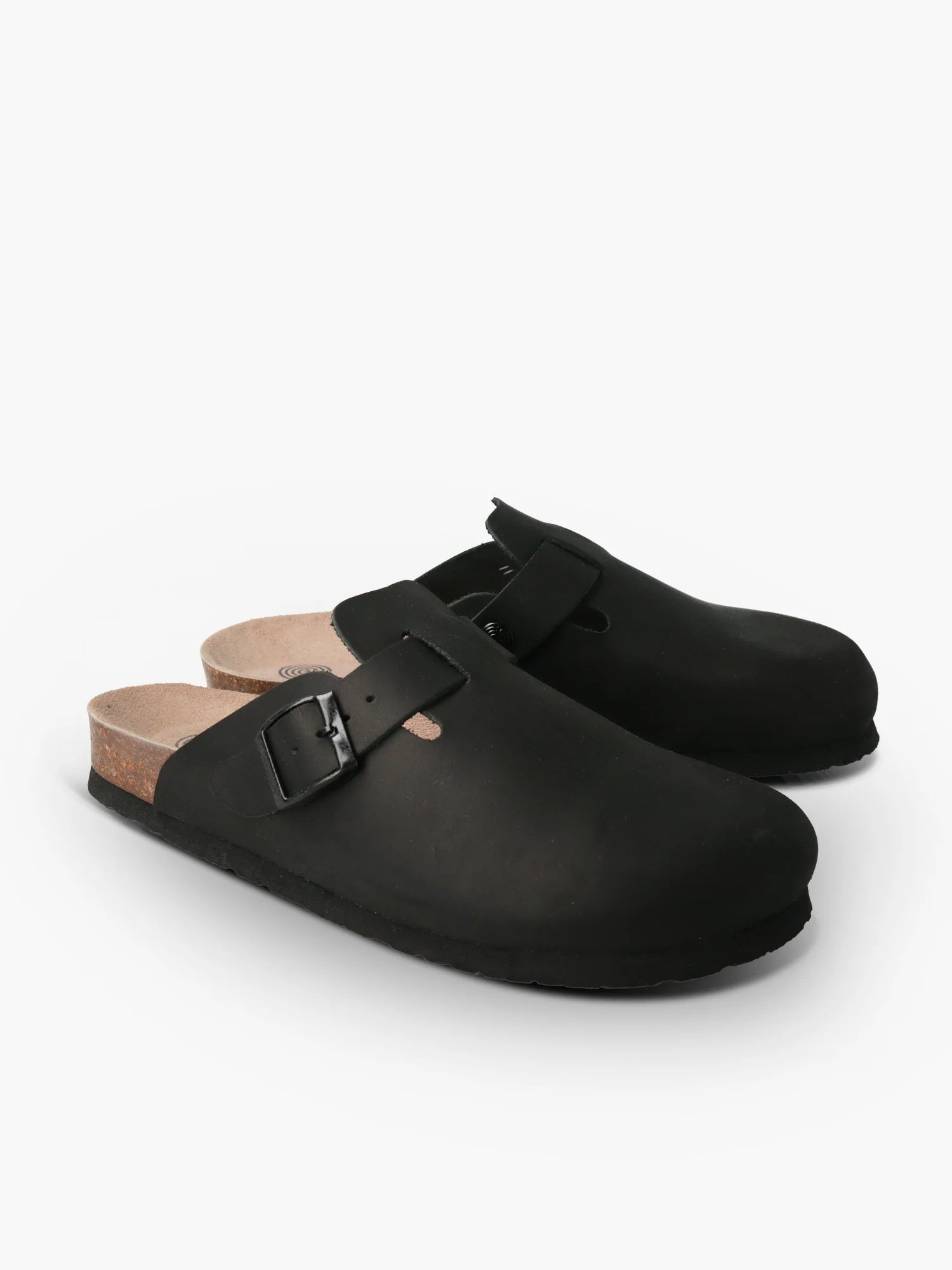 - Unisex Genuins Clog with Anatomical Footbed Available in sizes 35 to 46. Leather clog with an aged, vintage look and adjustable buckle. This leather undergoes a treatment to give it a worn, distressed appearance, providing a timeless vintage aesthetic.