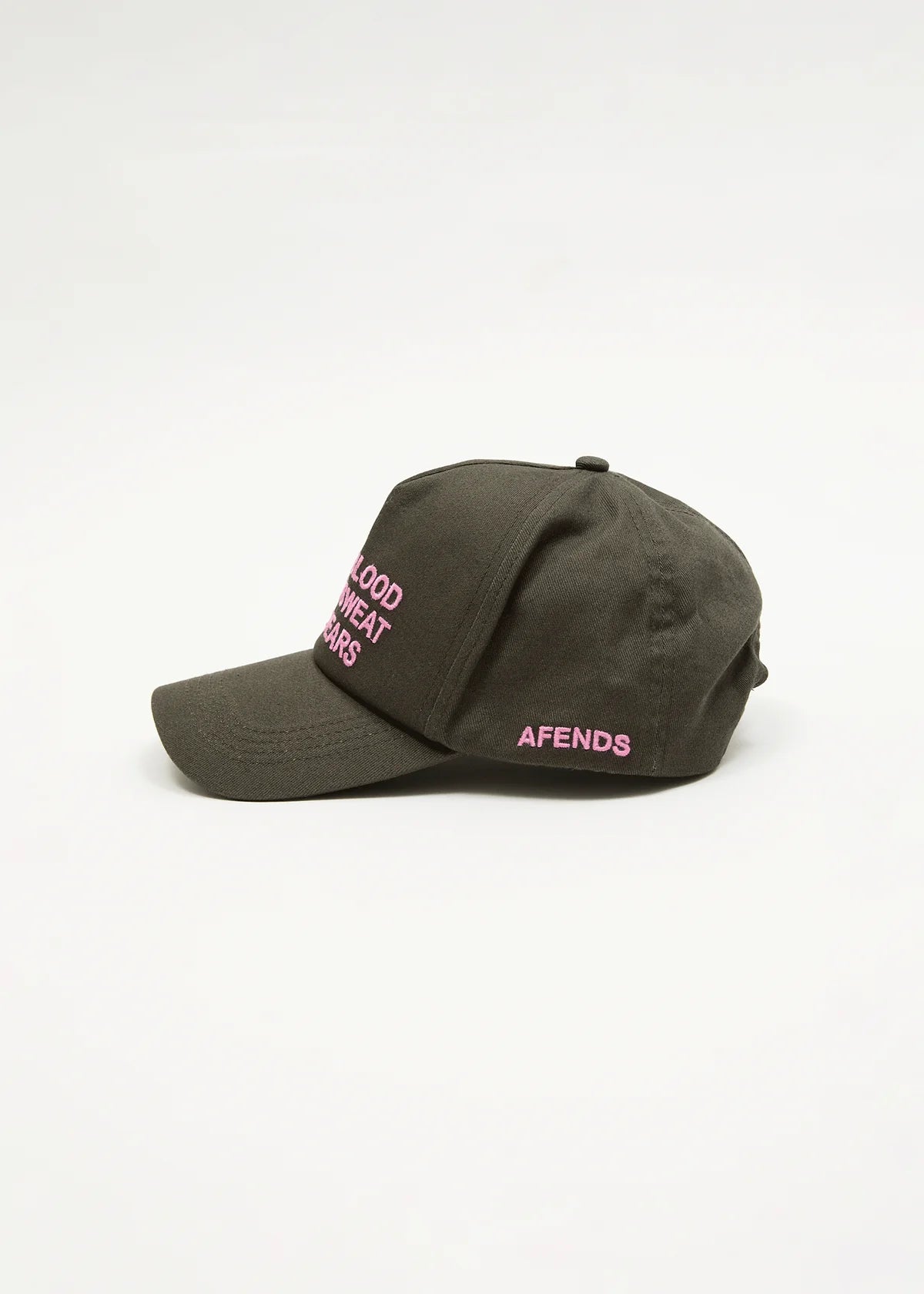 This trucker cap is crafted from 100% recycled cotton twill and offers an adjustable snapback strap and raised embroidered artwork.